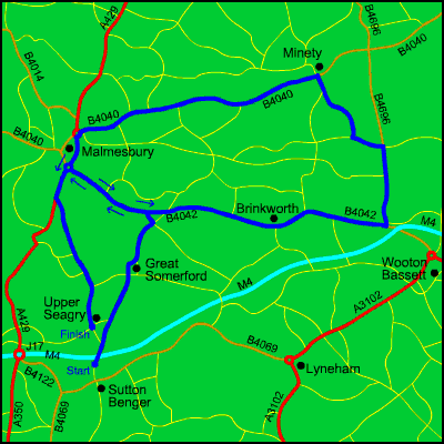 junction with B4042. Proceed on B4042 to Malmesbury Hospital roundabout. Circle
